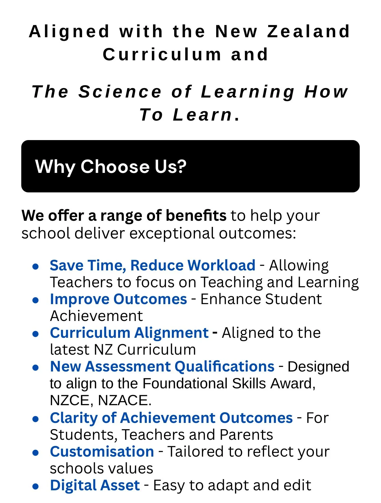 Bespoke Subject Schemes for New Zealand Schools Aligned to the NZ Curriculum